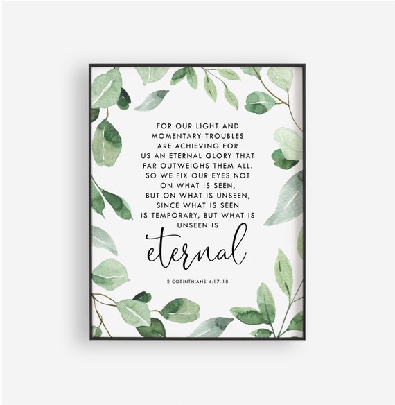 2 Corinthians 4 17 18 Unseen Is Eternal Bible Verse Wall Art Etsy